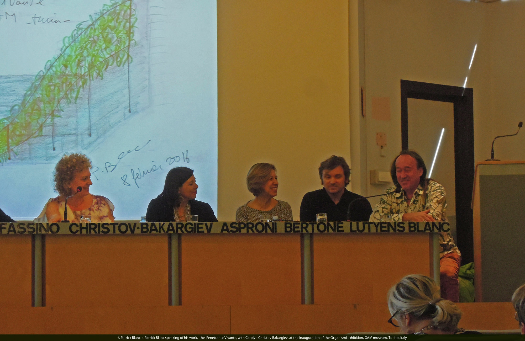 Patrick Blanc in discussion with Marcos Lutyens and Mario Cucinella at the GAM museum Organismi exhibition, Torino, Italy, May 2016