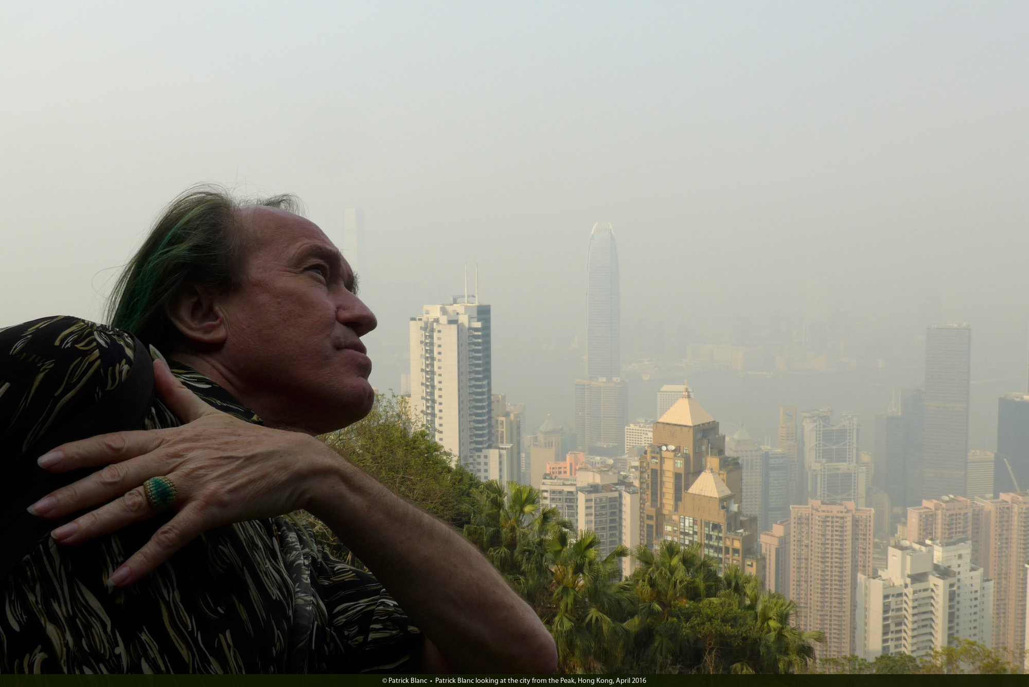 Patrick Blanc looking at the city from the Peak, Hong Kong, April 2016