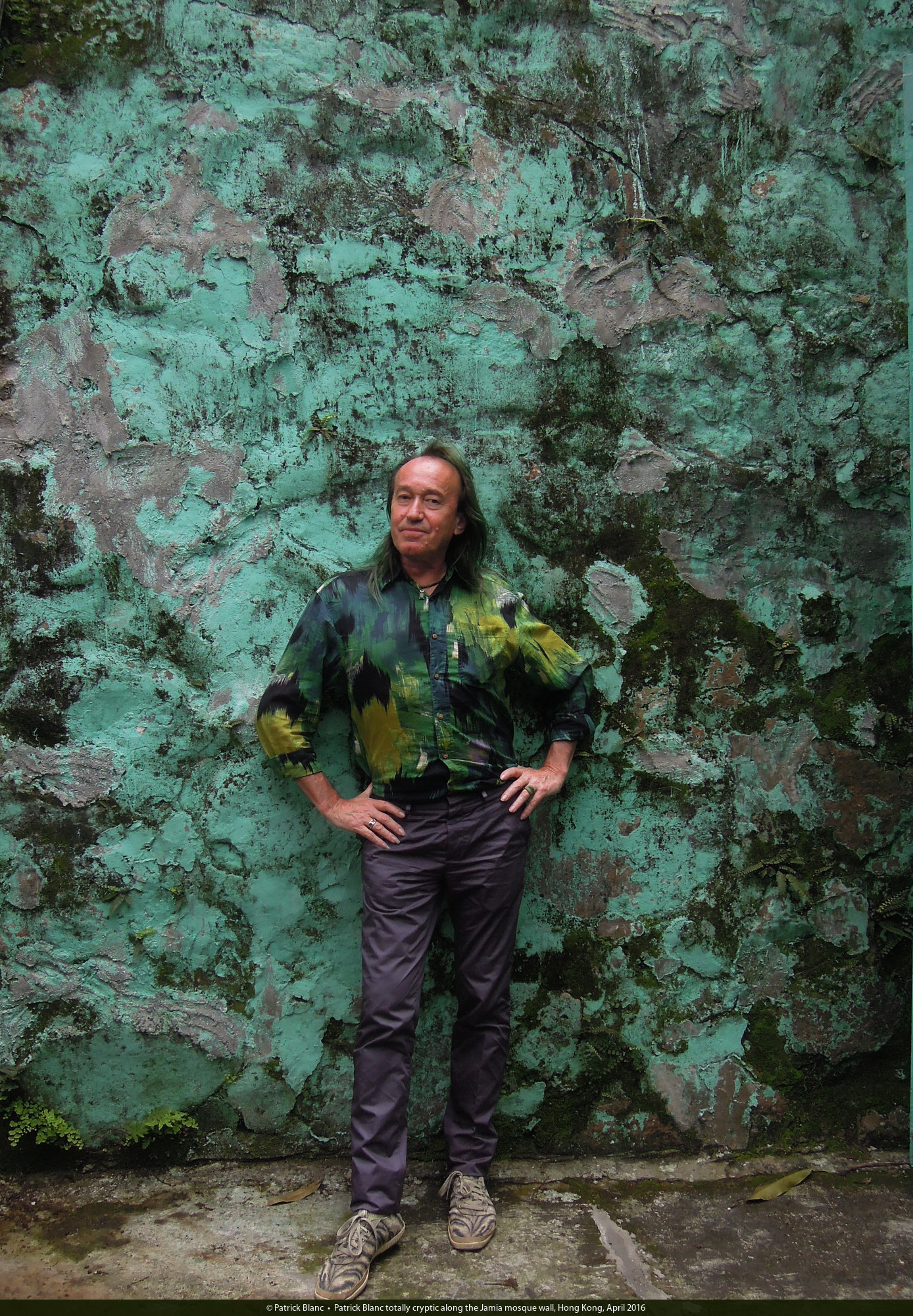 Patrick Blanc totally cryptic along the Jamia mosque wall, Hong Kong, April 2016
