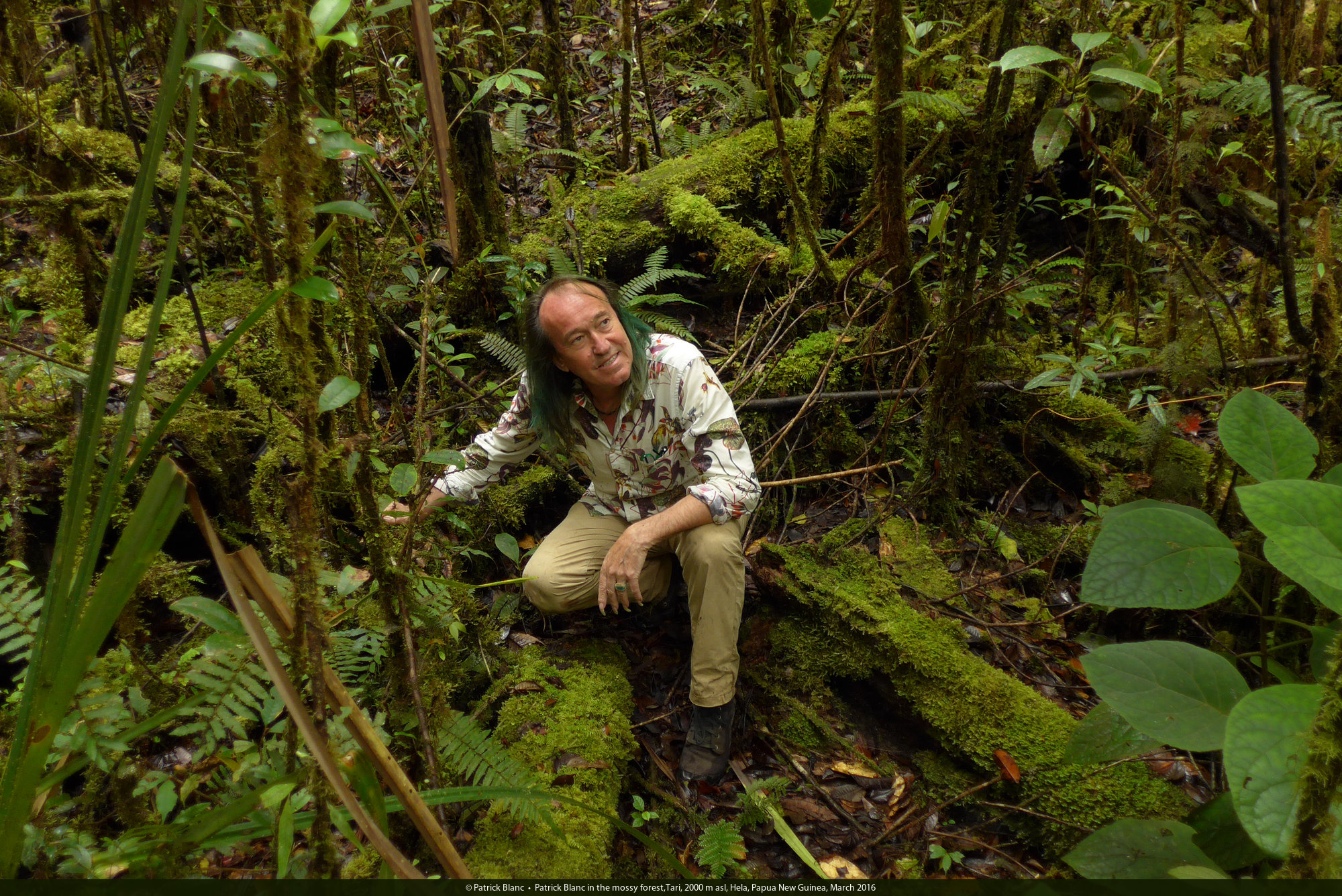 Patrick Blanc in the mossy forest,Tari, 2000 m asl, Hela, Papua New Guinea, March 2016