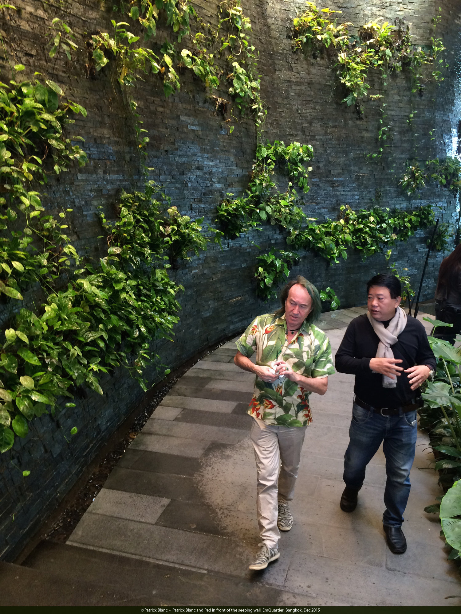 Patrick Blanc and Ped in front of the seeping wall, EmQuartier, Bangkok, Dec 2015