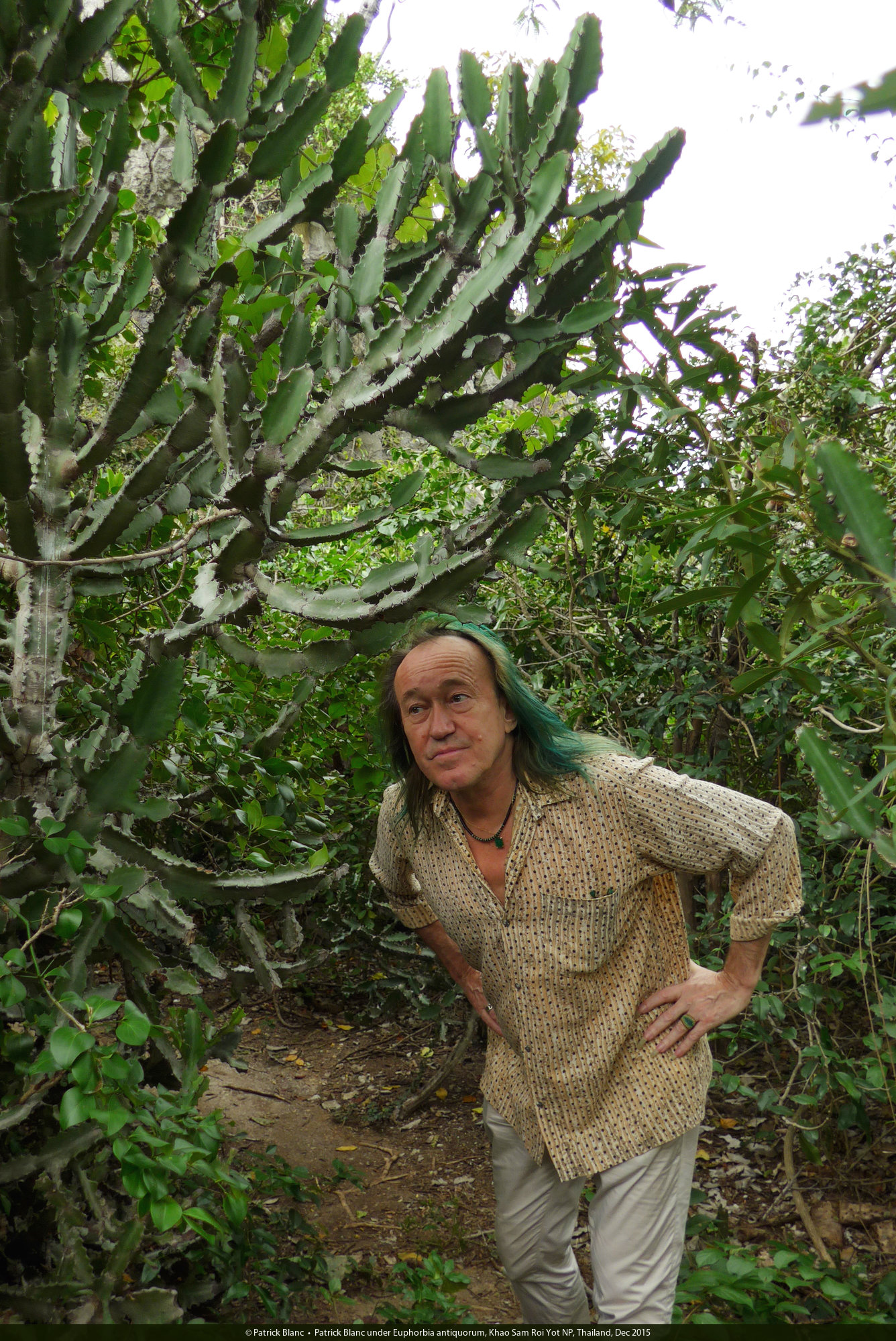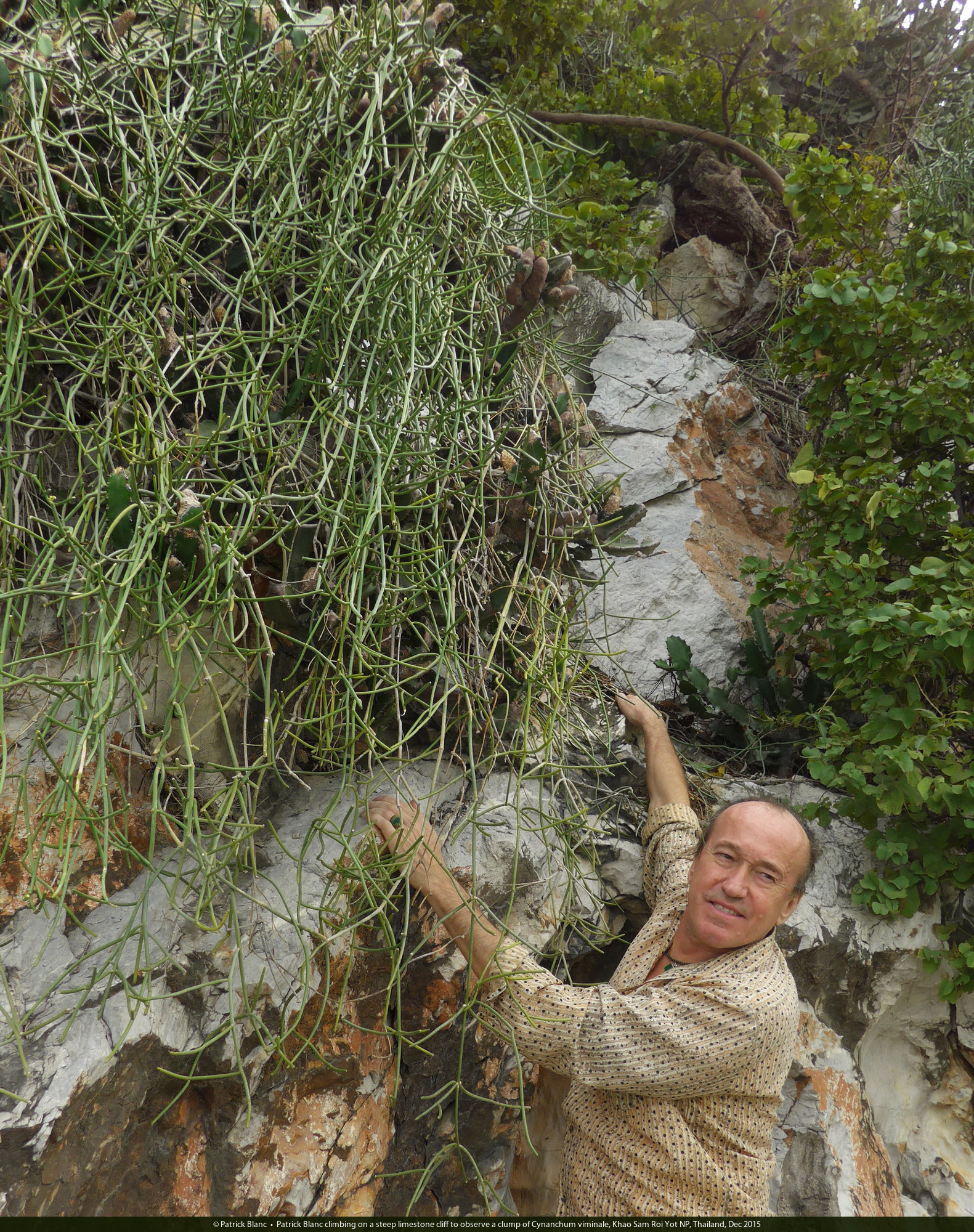 Patrick Blanc under Euphorbia antiquorum, Khao Sam Roi Yot NP, Thailand, Dec 2015