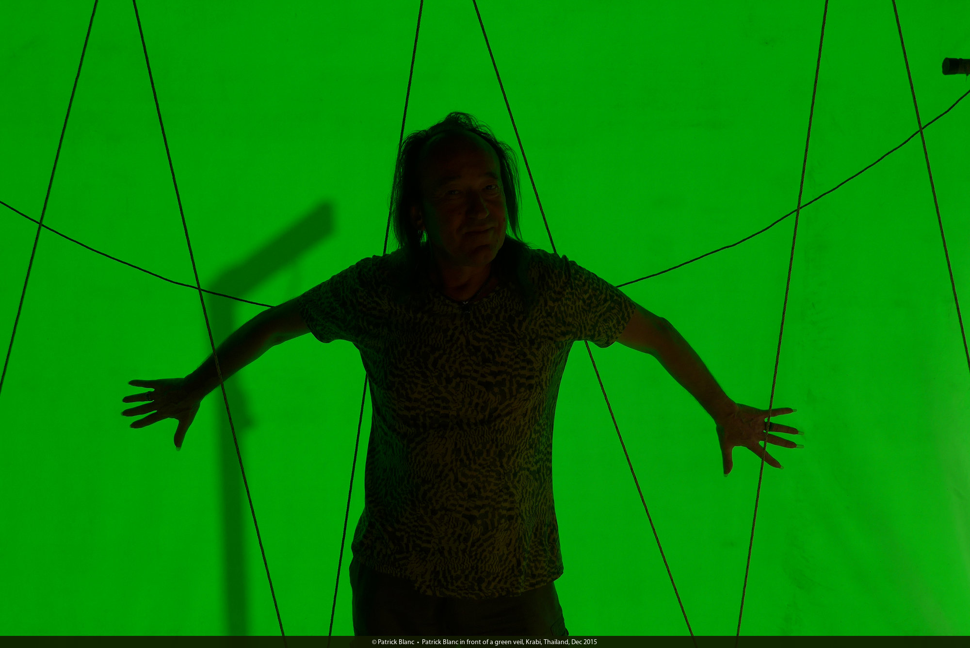 Patrick Blanc in front of a green veil, Krabi, Thailand, Dec 2015