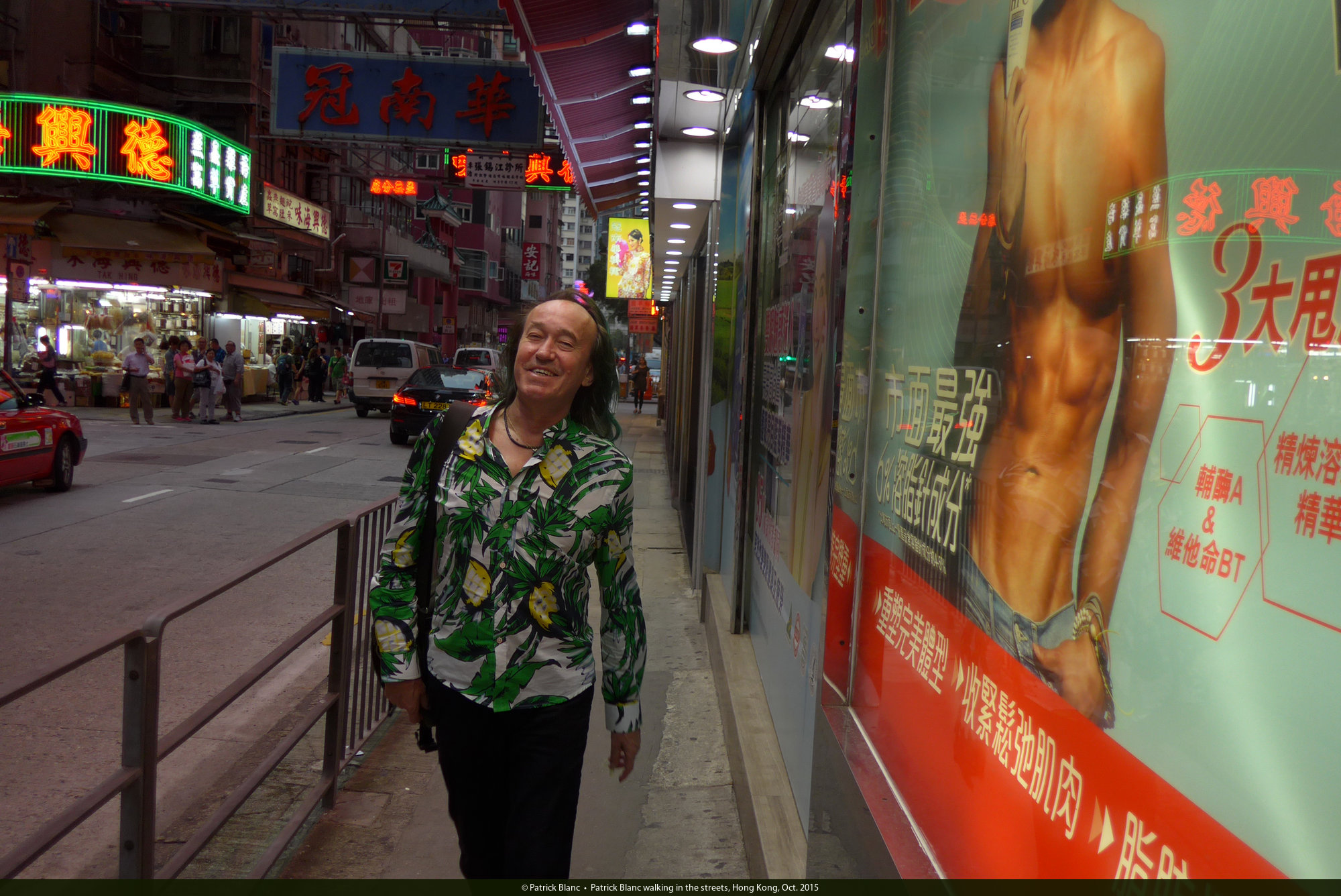 Patrick Blanc walking in the streets, Hong Kong, Oct. 2015