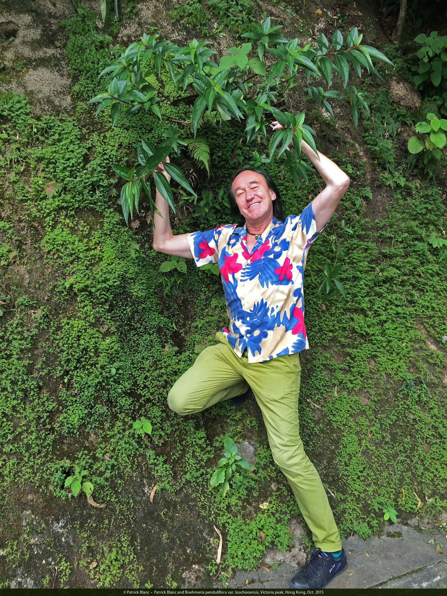 Patrick Blanc and Boehmeria penduliflora var. loochooensis, Victoria peak, Hong Kong, Oct. 2015