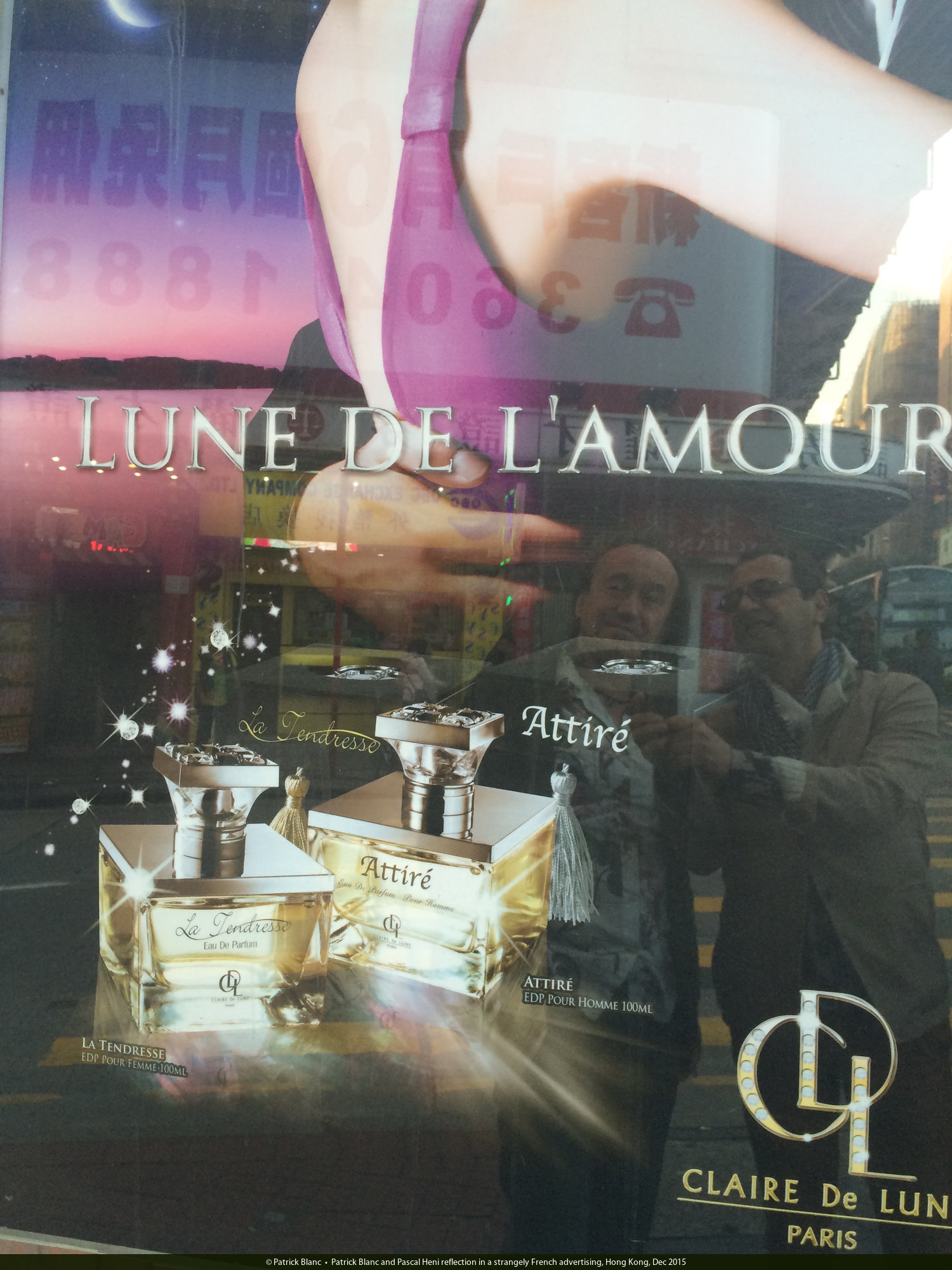 Patrick Blanc and Pascal Heni reflection in a strangely French advertising, Hong Kong, Dec 2015