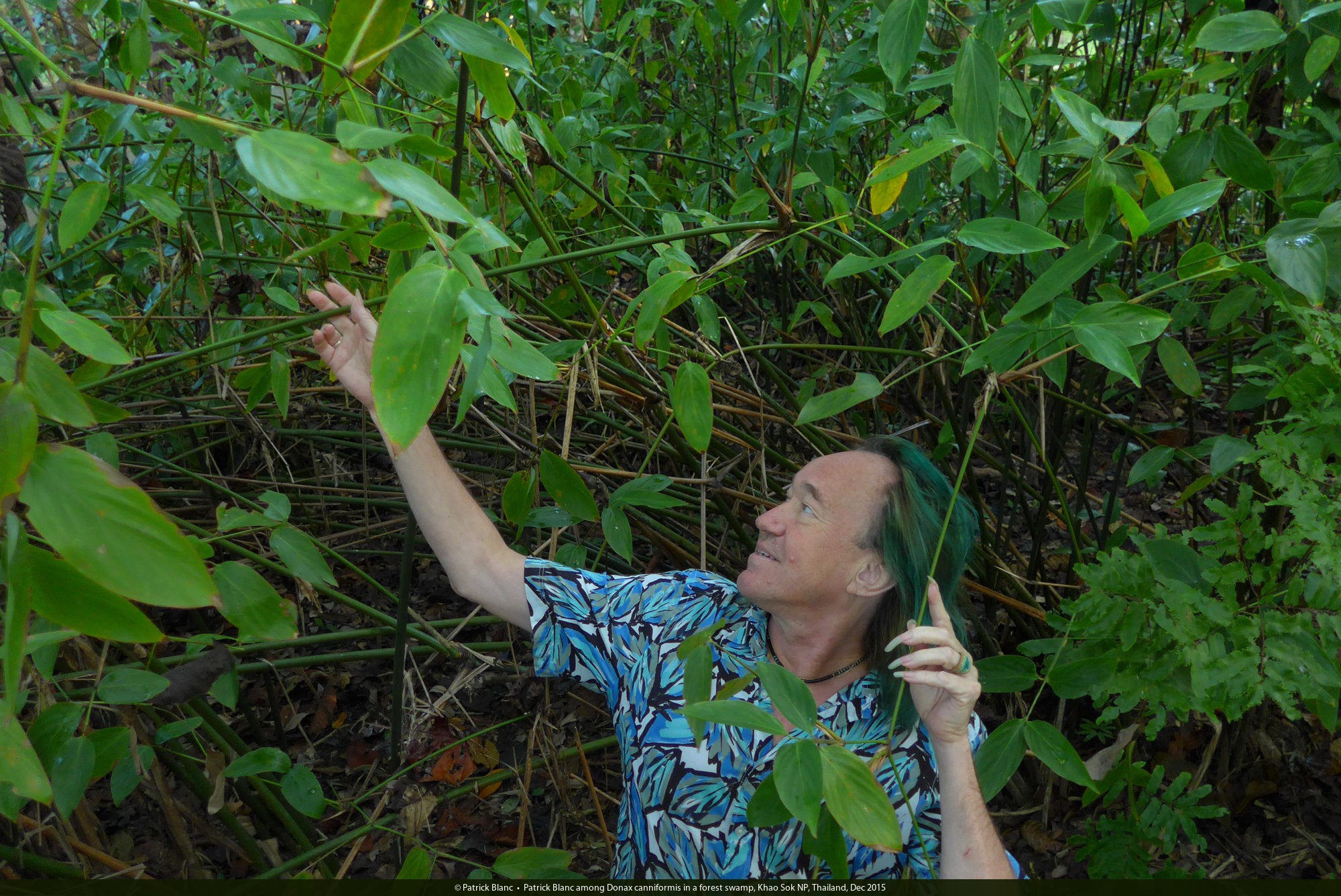 Patrick Blanc among Donax canniformis in a forest swamp, Khao Sok NP, Thailand, Dec 2015