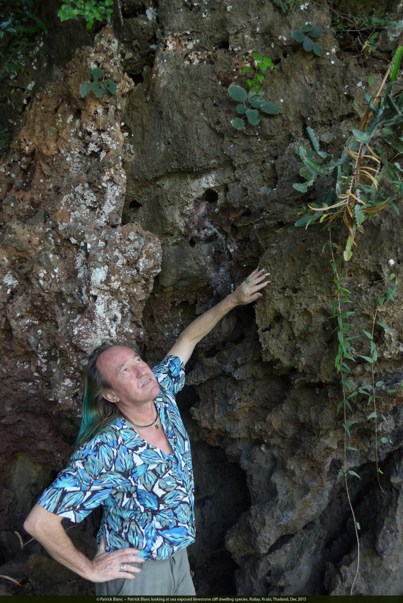 Patrick Blanc and a sea shore dwelling species of Tetrastigma, Railay, Krabi, Thailand, Dec 2015