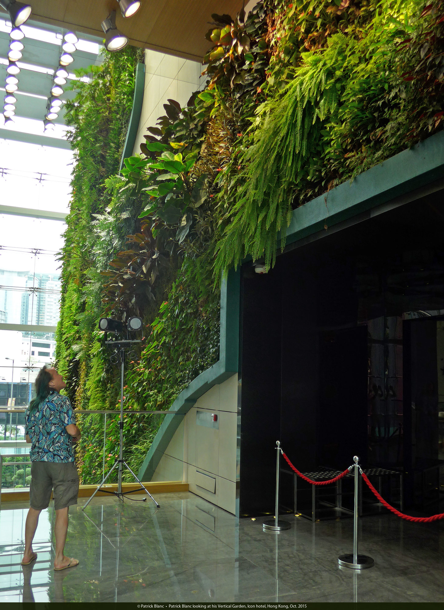 Patrick Blanc looking at his Vertical Garden, Icon hotel, Hong Kong, Oct. 2015