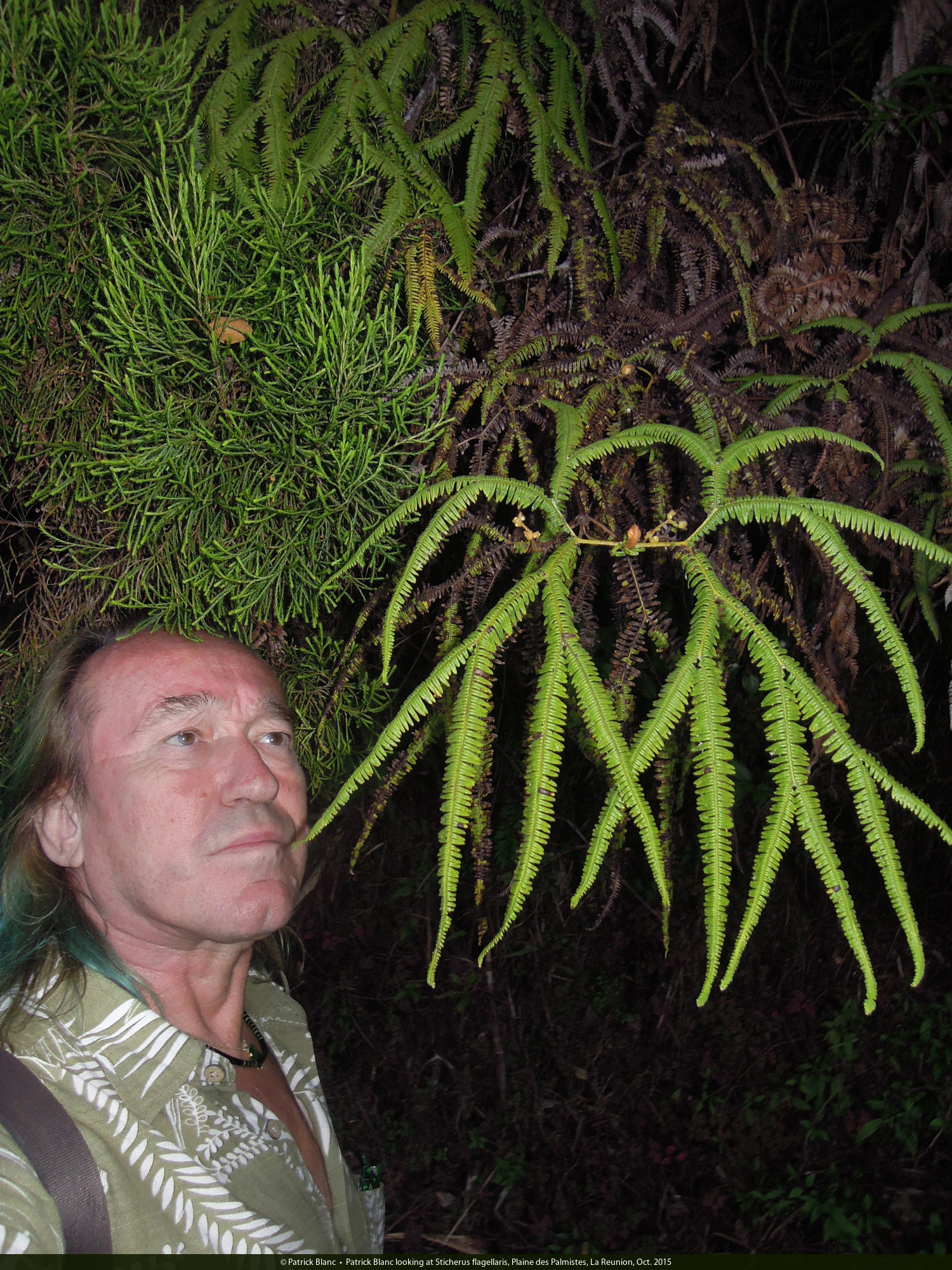 Patrick Blanc looking at Sticherus flagellaris, Plaine des Palmistes, La Reunion, Oct. 2015