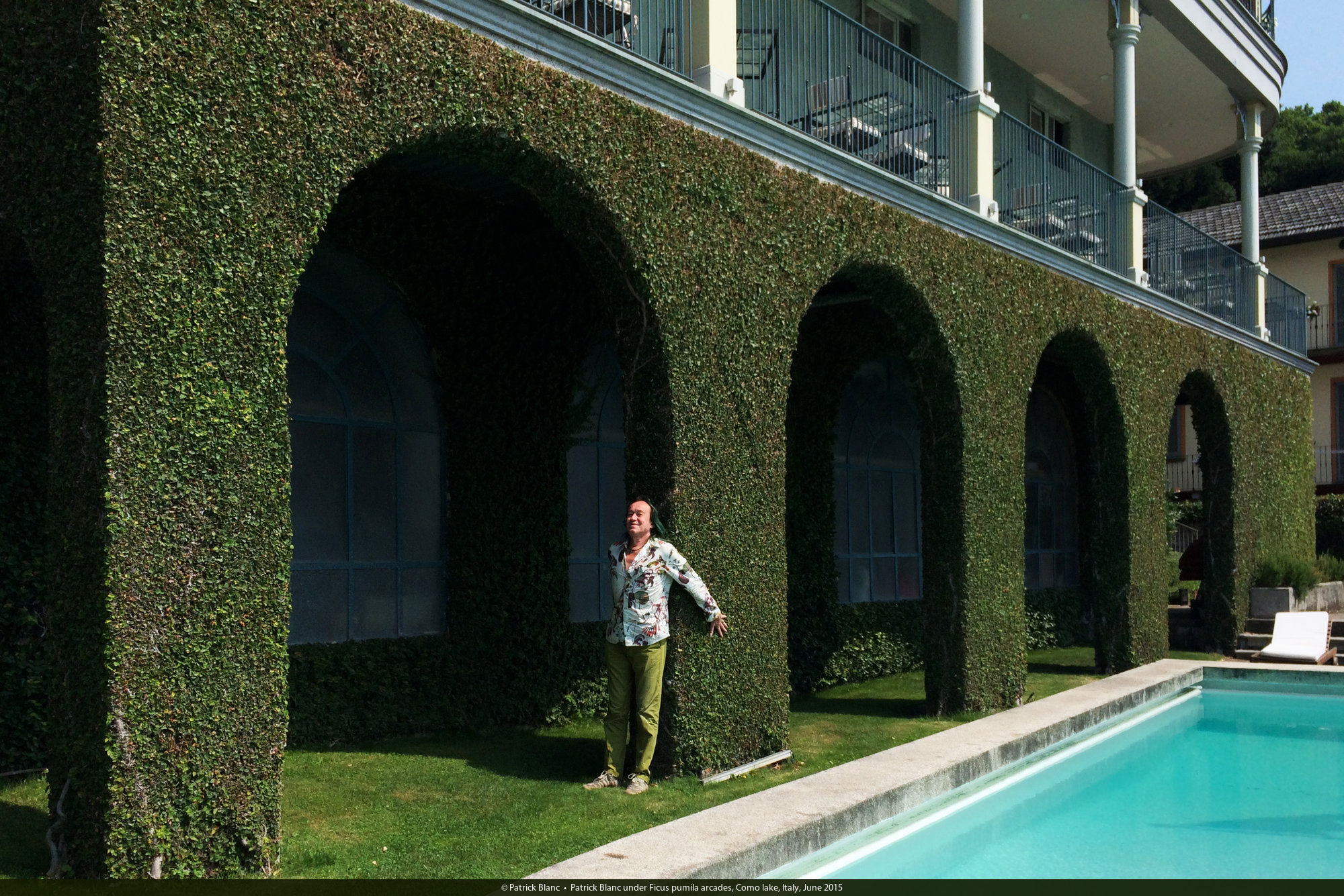 Patrick Blanc under Ficus pumila arcades, Como lake, Italy, June 2015