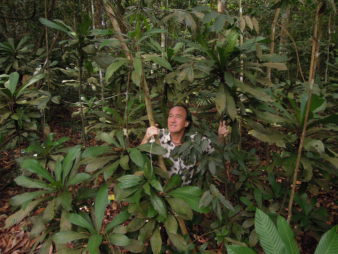 Patrick Blanc among the palm Livistona saribus in peat swamp forest, Perak, Malaysia, June 2015