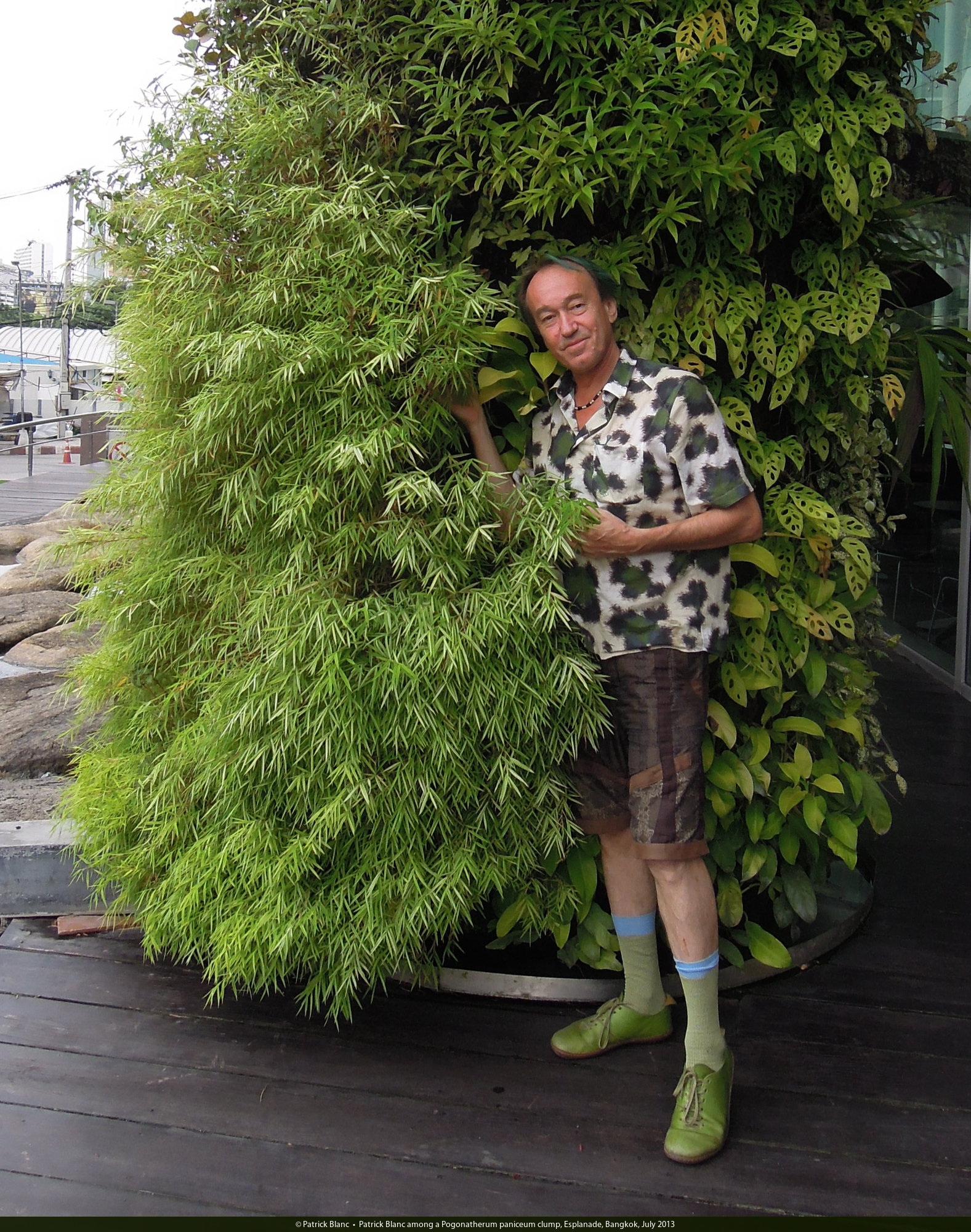 Patrick Blanc among a Pogonatherum paniceum clump, Esplanade, Bangkok, July 2013