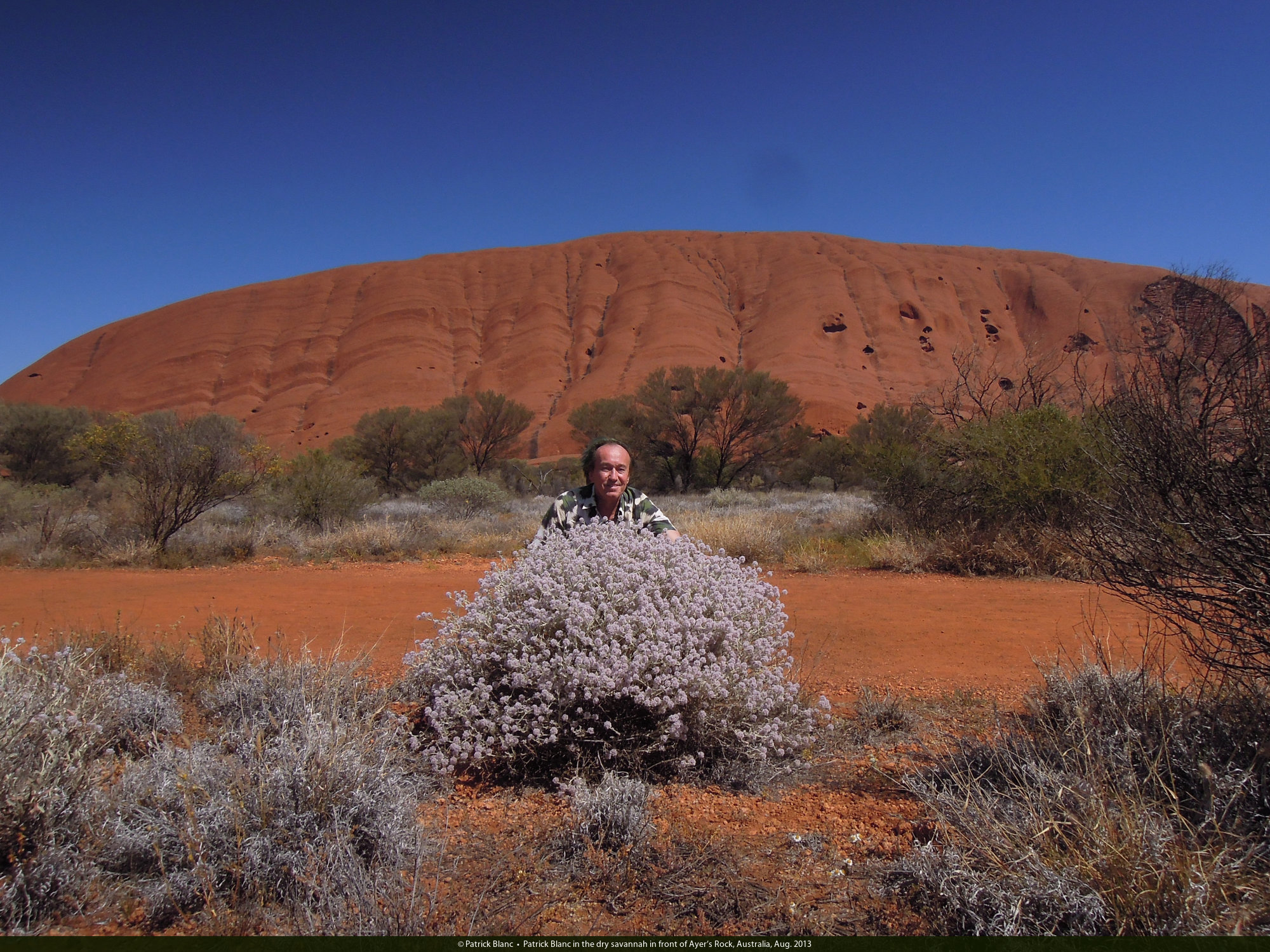Patrick Blanc in the dry savannah in front of Ayer's Rock, Australia, Aug. 2013