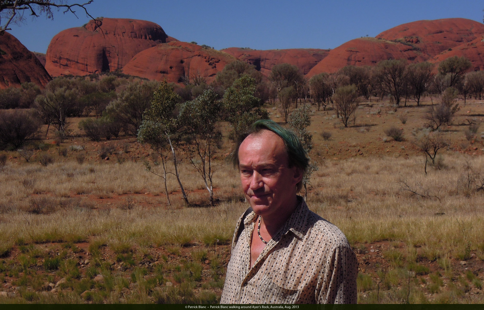 Patrick Blanc in front of the Allocasuarina decaisneana savannah, Ayer's Rock, Australia, Aug. 2013