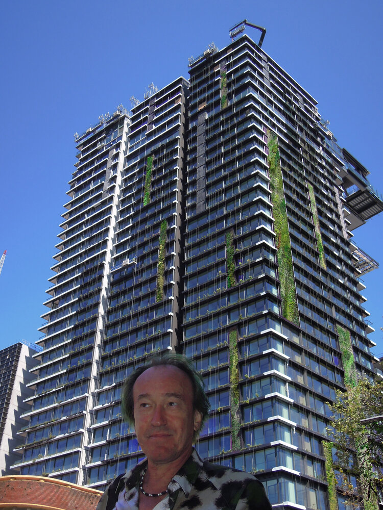 Patrick Blanc in front of One Central Park, few months after plant installation on the vertical gardens, Sydney, September 2013